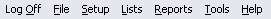 Log Off is the first menu item. See the Security section for information on how to setup users for log on and log off.