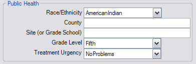 The code in each case is entirely optional. It is a useful place to put additional information about the site or county. If you later change a site or county name, it changes it for all patients using it. If you have mobile vans providing service to children, it is recommended to use the site field for the name of the school or community center. The Clinic field can be used to track which van provided the service. The site field can also be used to track nursing homes, etc.